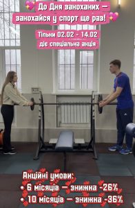 З 02.02 по 14.02 у СК «Олімп» діє спеціальна акція для тих, хто обирає здоров’я, рух і турботу про себе 🏋️♂️